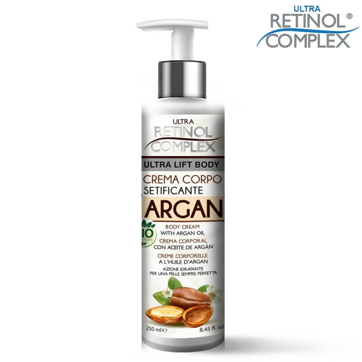RETINOL COMPLEX® CREMA CORPO SETIFICANTE con Olio di Argan rende la pelle elastica e tonica a lungo. Una crema per tutti i tipi di pelle ma soprattutto ideale, per unghie fragili, pelle secca e ruvida.